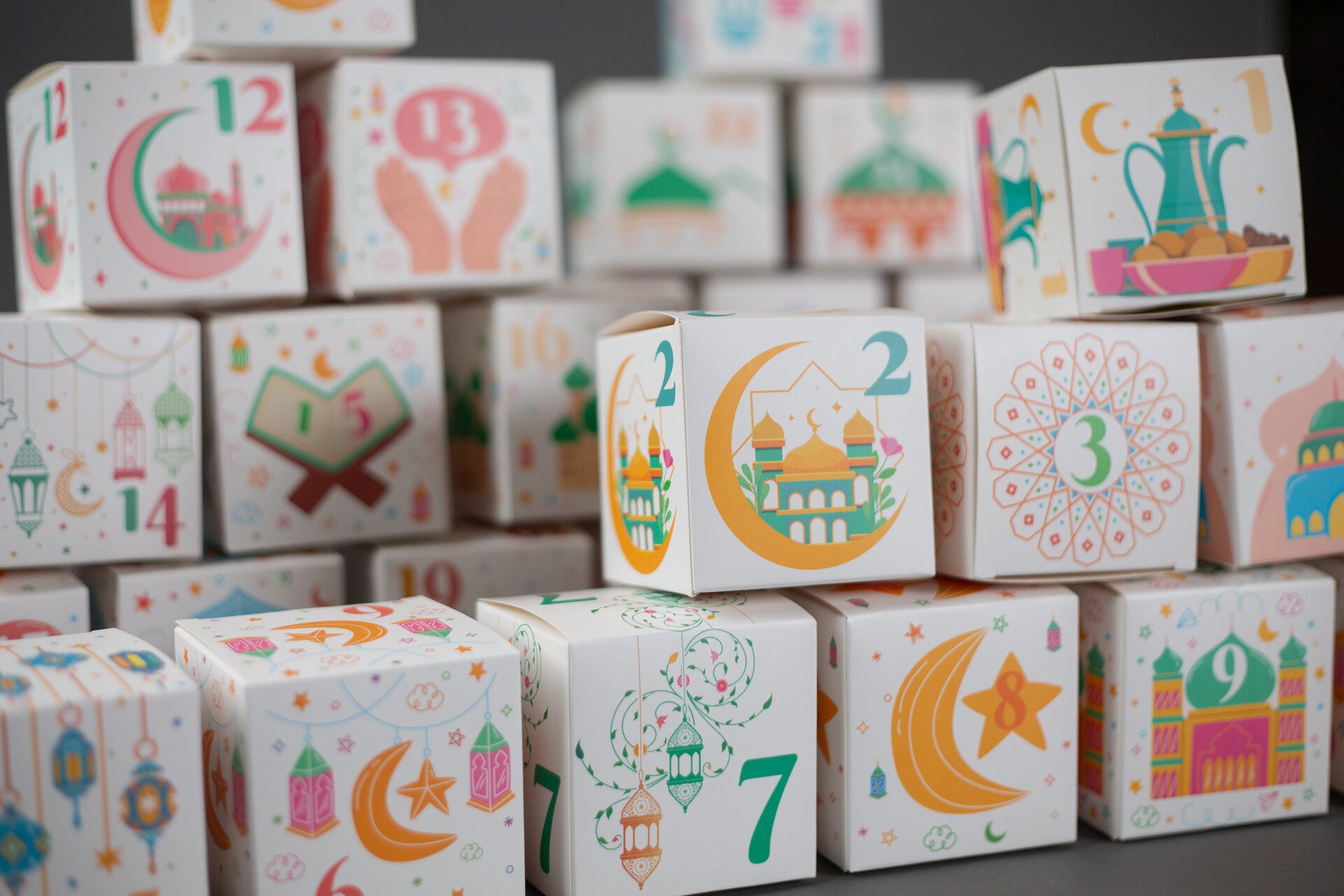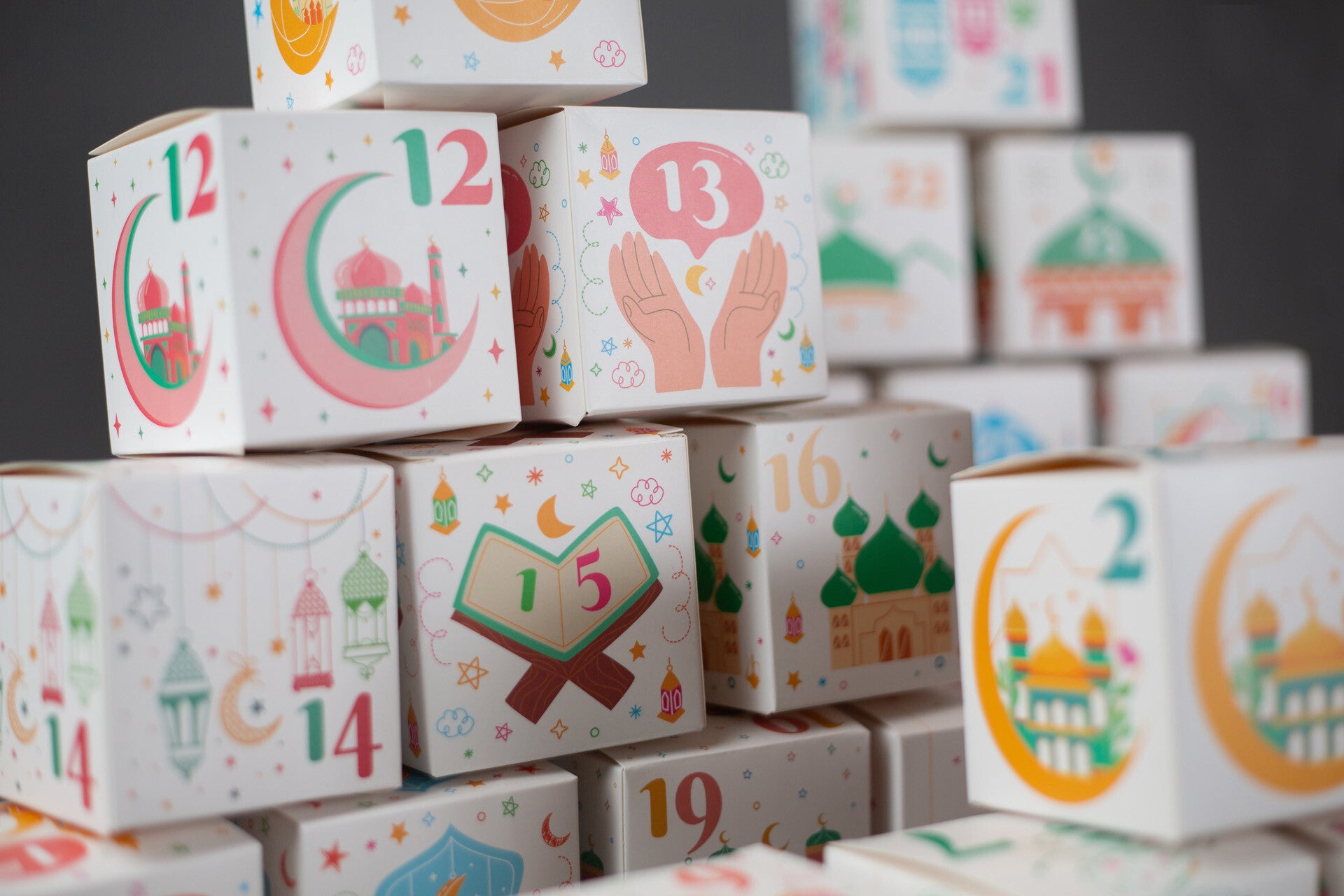 Ramadan adventskalenders met 30 verrassingen voor kinderen. Halal, leerzaam en vrolijk. Leuk om elke dag samen te openen tijdens Ramadan. Kunnen meerdere jaren gebruikt worden.